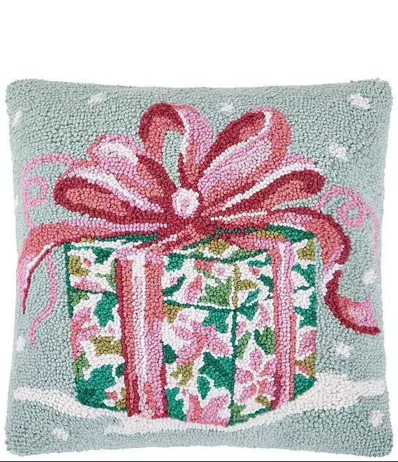 Celebrate the Holiday Season in style with the Pink Present Wool Hook Pillow from CAPERS Home. Handcrafted by Peking Handicraft, this delightful accent piece adds warmth, color, and cheer to your home décor.