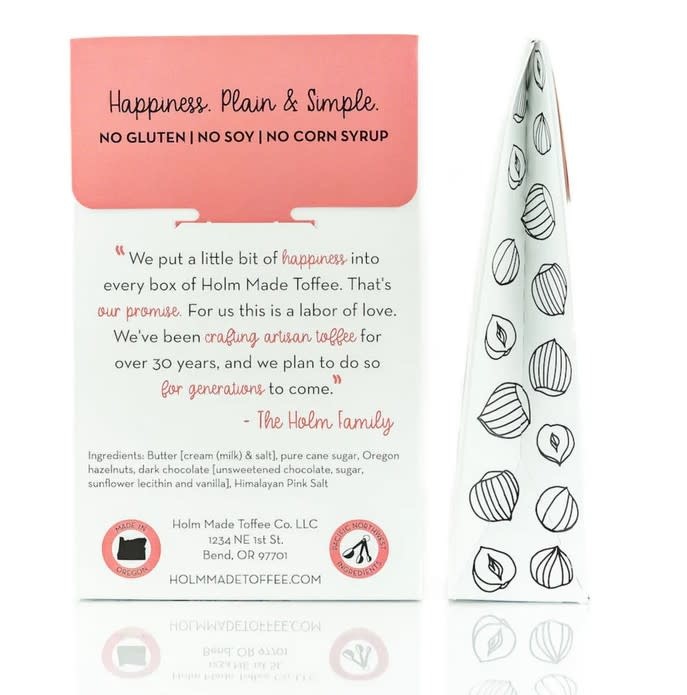 It has been awarded the 2019 Gold medal for "Top Toffee" from the International Chocolate Salon. Our toffees contain no gluten, soy, corn syrup or preservatives. It's Happiness. Plain & Simple!