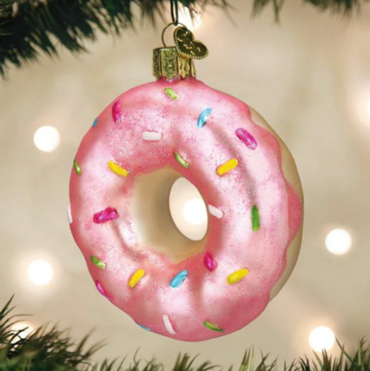 Review Pink Sprinkles Donut Glass Ornament