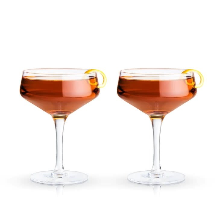 Sleek, contemporary angles give this coupe set a stylish update on the classic cocktail glass, making it a perfect addition to a home bar, table setting, or curated gift collection.