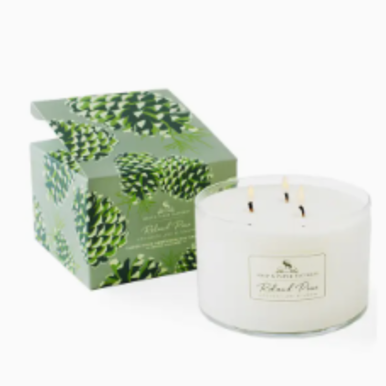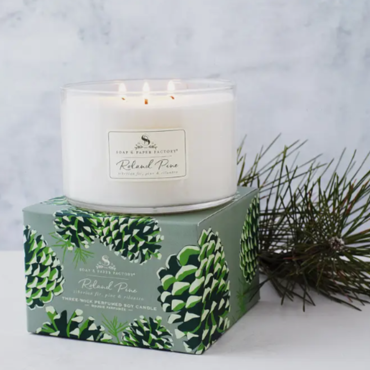 This candle is the mega star of the Roland Pine candles! Our copious soy candle will instantly fill your space with the forest-fresh scent of Roland Pine! Notes of Siberian Fir, Pine boughs and fresh picked Cilantro will turn your space into the happiest pine forest on earth! Triple the throw, with three wicks, a wonderful addition to big and small spaces. Roland Pine is not just for Christmas! It's gorgeous and fresh all year long. Burn 4 hours at a time. Trim wicks to ¼ inch before each lighting. Allow to cool before relighting.