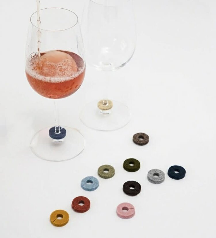The perfect host or hostess gift, these wine glass markers are super unique and made from sustainable and renewable luxury grade Bavarian Merino wool felt. The felt is naturally stain-resistant and ultra soft offering a scratch-free, well designed option that stands out from all other wine charms.