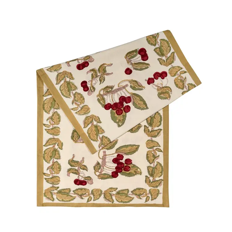 Handmade from premium 100% cotton, this table runner features a lively cherry pattern inspired by classic French design, making it perfect for everyday meals, festive gatherings, or special occasions.