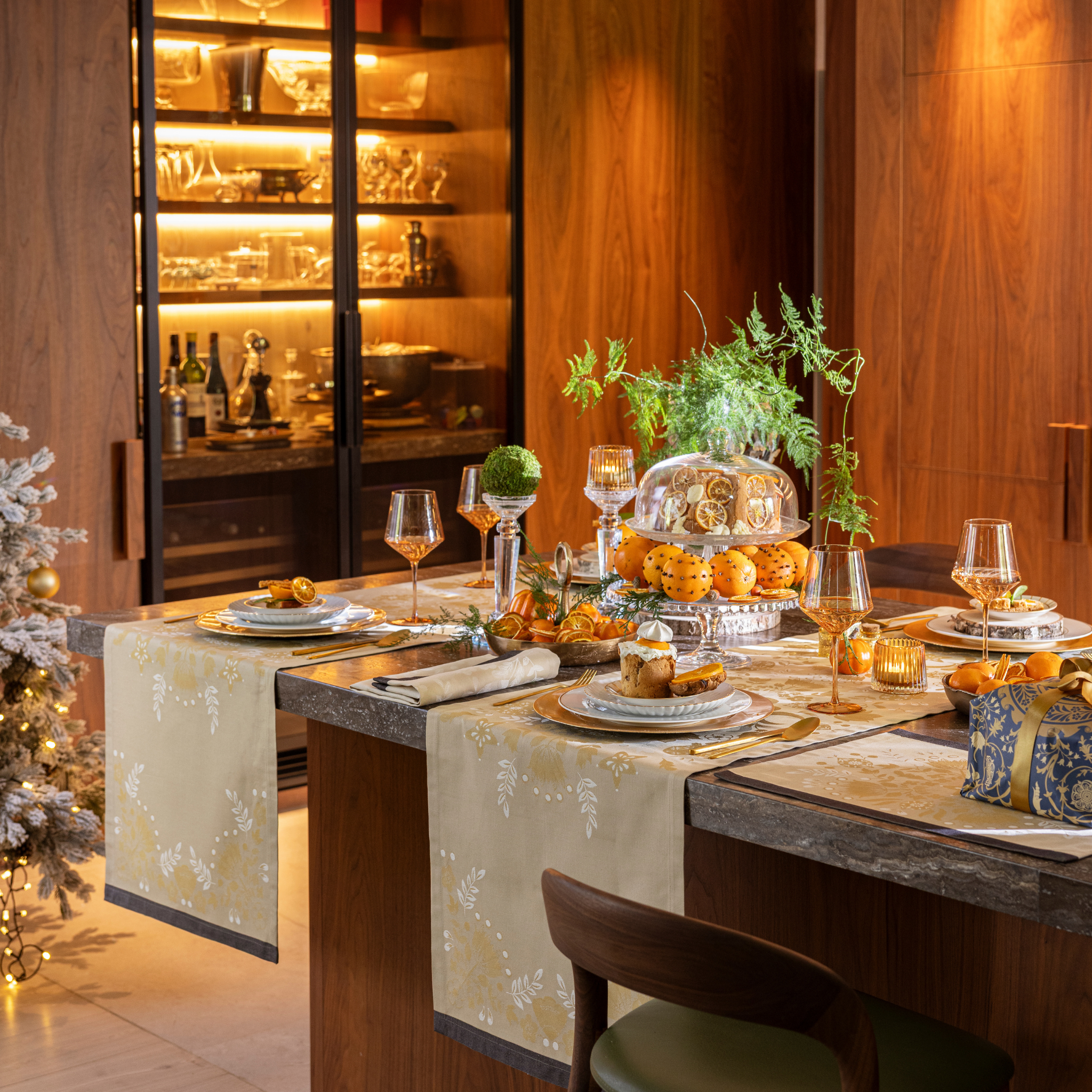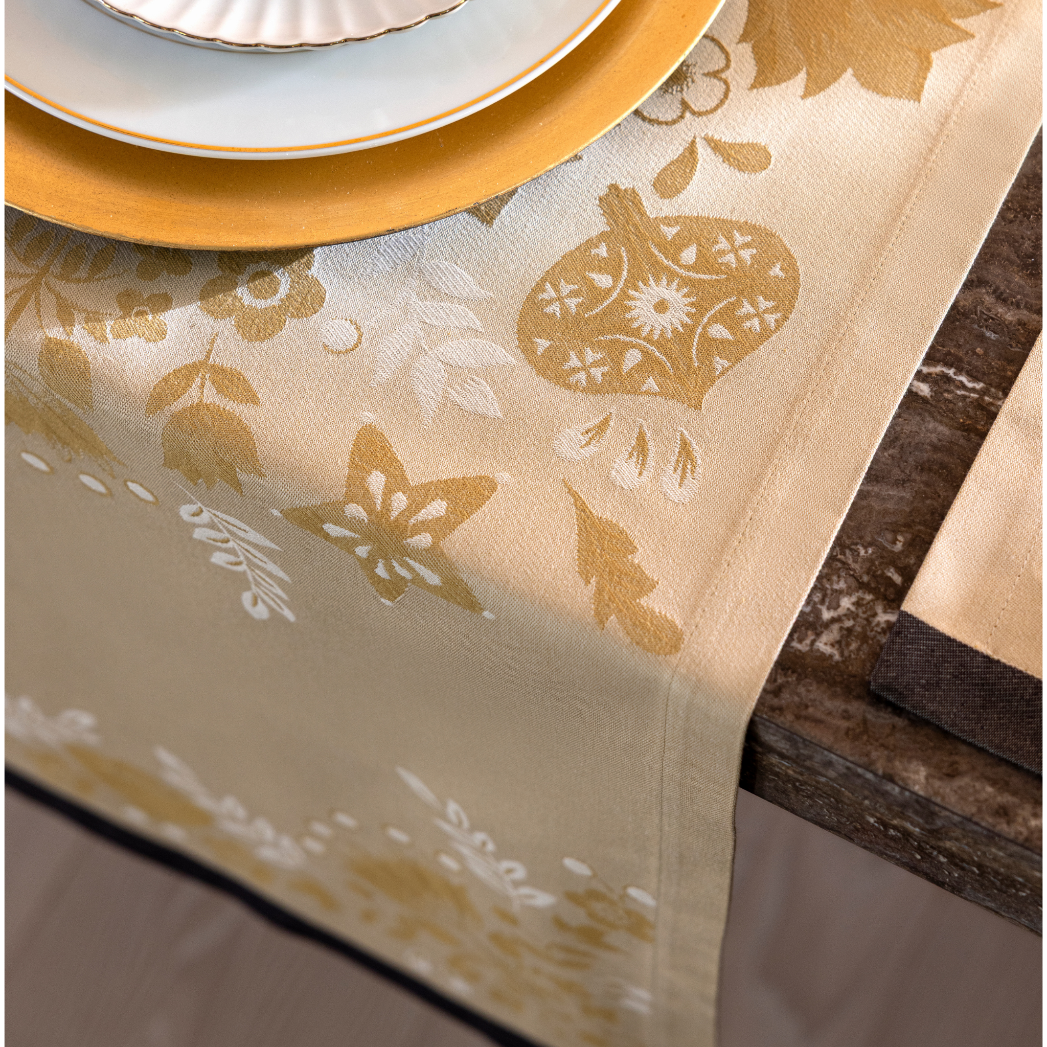Traditional woodwork and painted flowers are reimagined as refined wreaths and garlands, while Christmas trees, stars, and festive baubles add a radiant touch to your décor. The Runner Féerie Yellow brings French artistry to your holiday tablescape — a perfect blend of elegance, craftsmanship, and celebration.