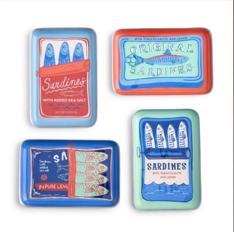 - Set of four sardine-themed metal trinket trays
