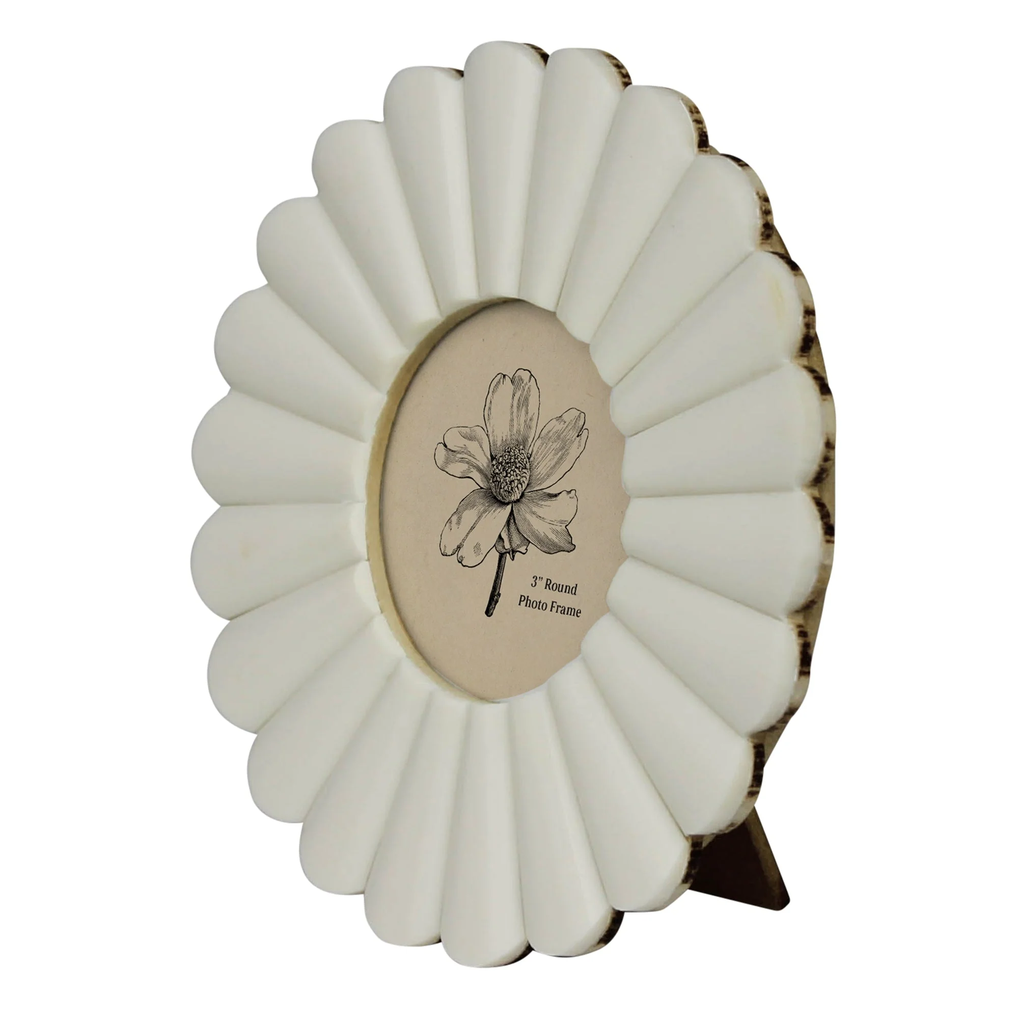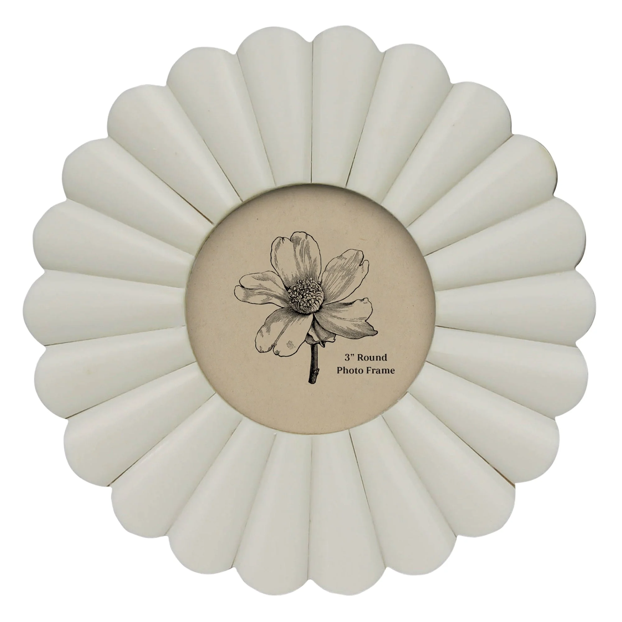 Celebrate life’s most meaningful moments with the Scalloped Round 3" Frame—a beautifully designed piece that enhances both home decor and thoughtful gifting. With its delicate scalloped detailing and timeless silhouette, this frame transforms simple photographs into elegant displays.
