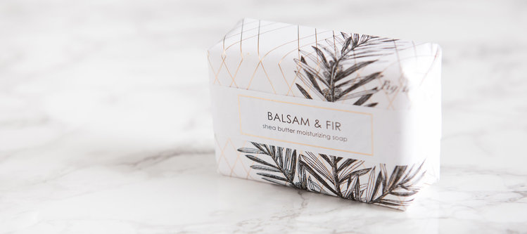 6+oz. shea butter bath bar packaged in signature botanical and vintage illustrations. Lovely wrapped soap bars perfect for gift giving. Very clean smelling, but the amber and balsam add a bit of a vanilla like depth.