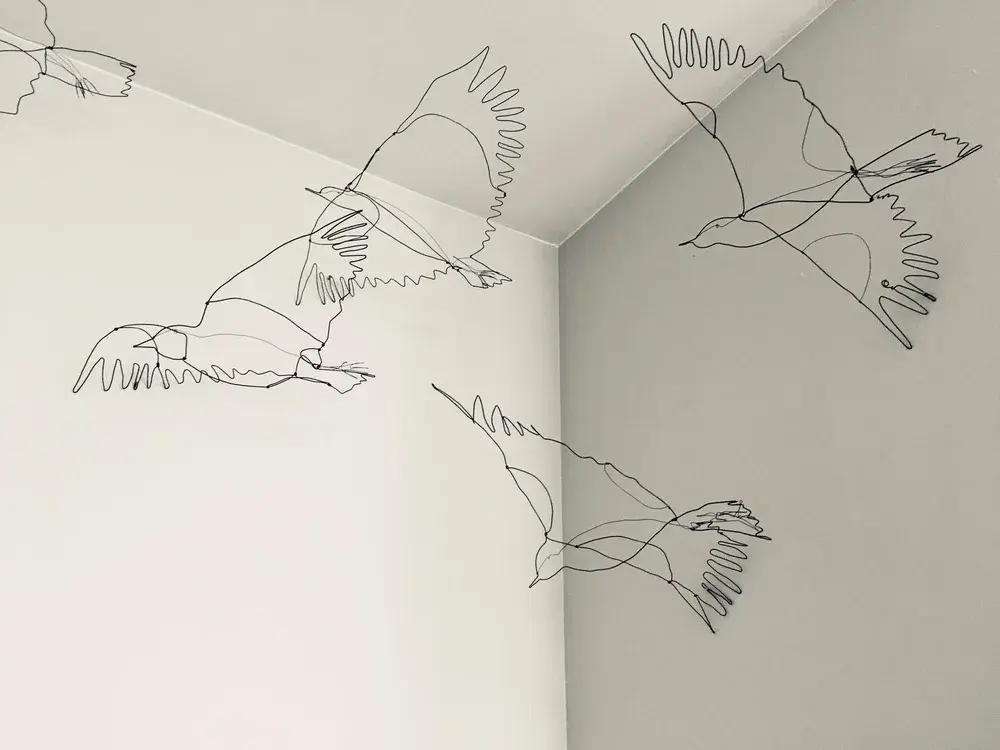 Available individually or as a flock, these wire birds transform any space with elegance and creativity. Each bird measures approximately 15" x 12". Due to size, shipping can be expensive, so local pickup is encouraged when possible.