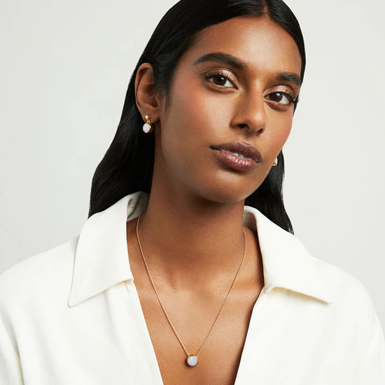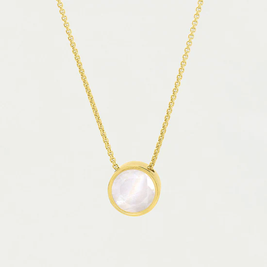 Each rainbow moonstone is ethically sourced and hand-cut, ensuring a unique and natural variation in color for a one-of-a-kind piece. The pendant hangs on a fluid, adjustable 18" box chain, allowing it to be styled at your preferred length.