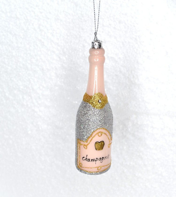 Silver Glittered Champagne Glass Ornament