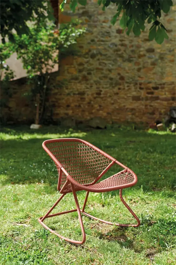 Designed by Frédéric Sofia, the Sixties Rocking Chair captures the spirit of a nostalgic era while delivering modern comfort. Its soft curves and woven texture echo the charm of vintage design, making it a standout in both home decor and outdoor furniture styling.