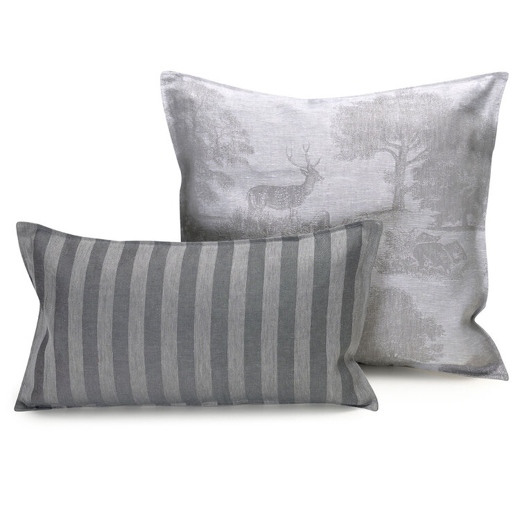 Let yourself be seduced by our Souveraine cushion covers to bring freshness to your decor. As if in a toile de Jouy, pheasants, wild boar, fawns and hares bask in the lush beauty of the vegetation. Our cushion covers are made from 100% linen in France, and will add character to your decor.