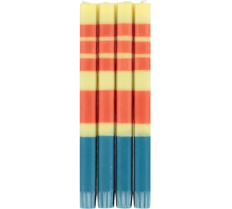 Add these vibrant striped tapers to your home decor collection to infuse any room with charm, colour, and warmth.