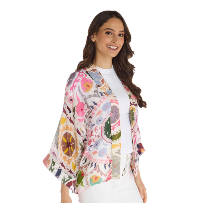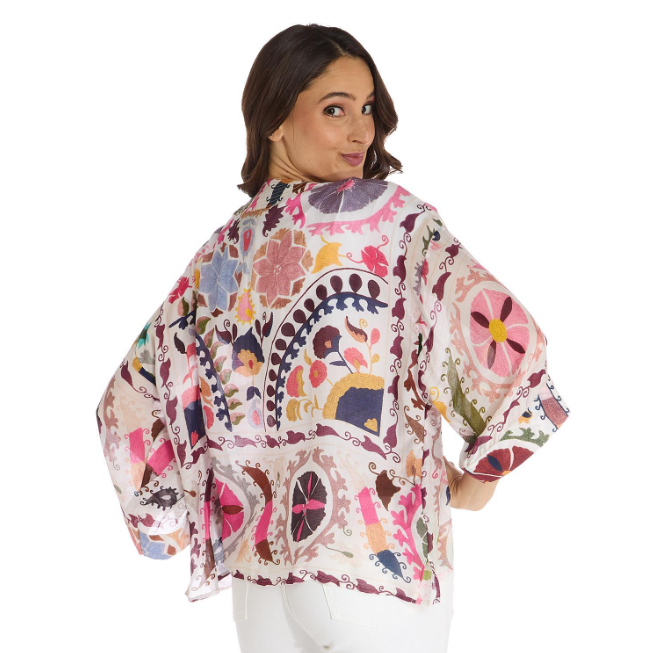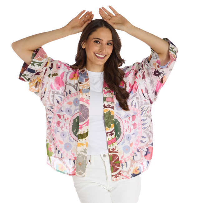 Featuring One Hundred Stars' signature Susani print in romantic pink tones, this Kimono adds instant charm to both casual and dressy looks.