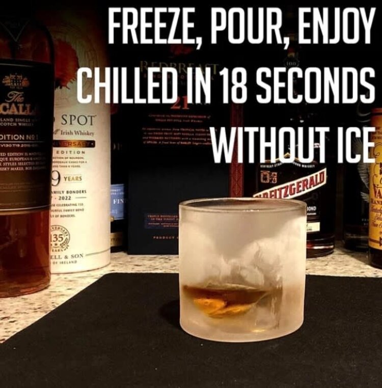 The Patented Chill-Charge System™ chills down your drink in just 18 seconds. Quickly release whiskey aromas by swirling the spirits gently around the faces of the Peaks -