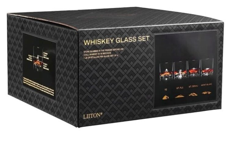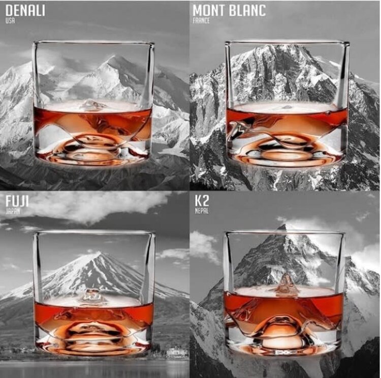 Crafted using X1 Crystalline, weighing in at 1lb each, the Peaks Glass is the only true precision glass sculpture of iconic mountains in a Crystal glass. The set includes one of each four iconic Mountains - Denali, Mont Blanc, K2 and Mt. Fuji.