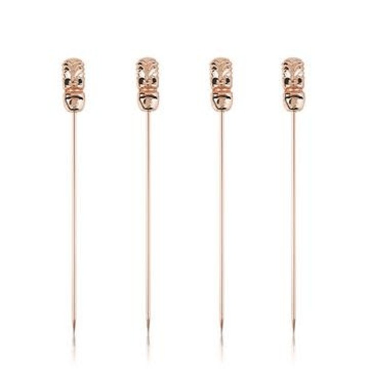 At once familiar and totally new, these tiki-inspired cocktail picks draw on sculptural motifs from the Pacific islands. Their metallic finish adds a hint of effortless polish and sets a striking silhouette atop any tropical cocktail.