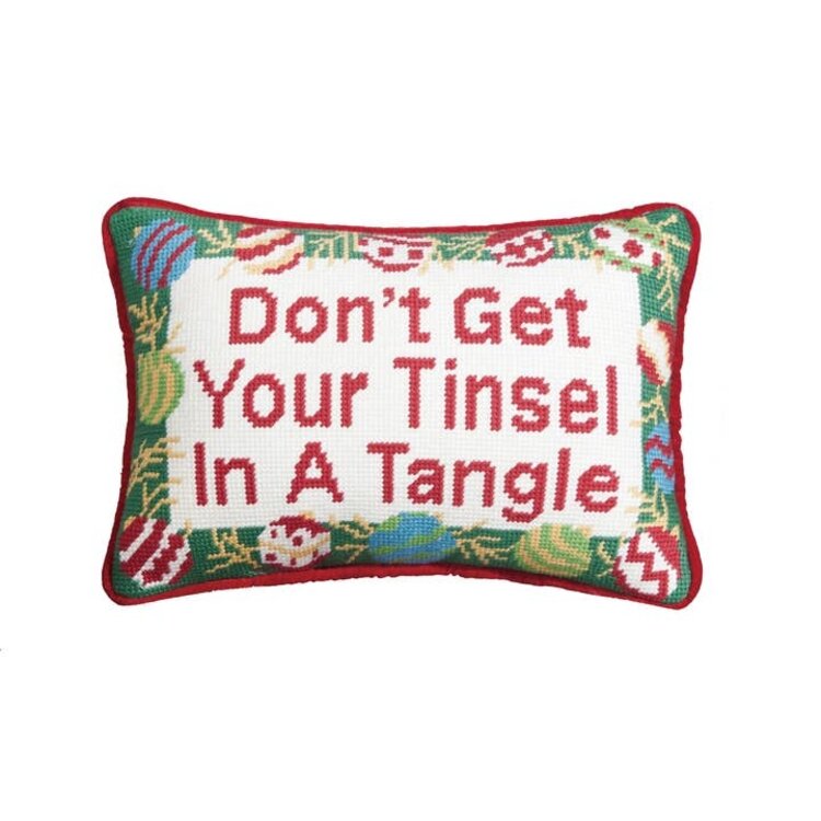 Add a touch of playful charm to your Holiday Season décor with the Tinsel Tangle Pillow from CAPERS Home. Handcrafted with care, this delightful embroidered needlepoint accent pillow features the humorous saying, “Don’t get your tinsel in a tangle” — a perfect reminder to keep the Holiday Season merry, bright, and stress-free.