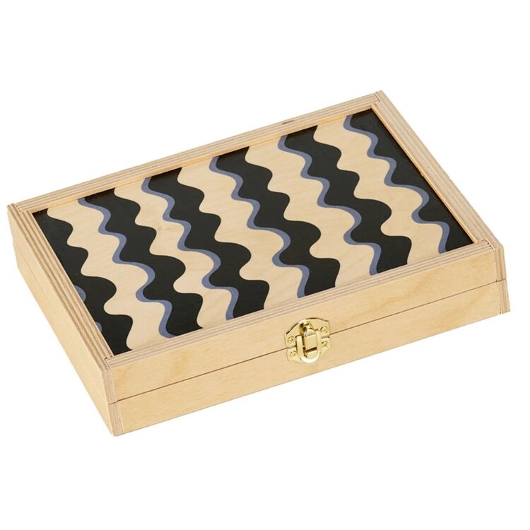 This custom-printed set packs up neatly for easy travel, making it perfect for picnics, weekend escapes, or cozy nights by the fire. Each kit includes two sets of checkers and dice, with brass hardware adding a touch of luxury to this heirloom-quality piece.