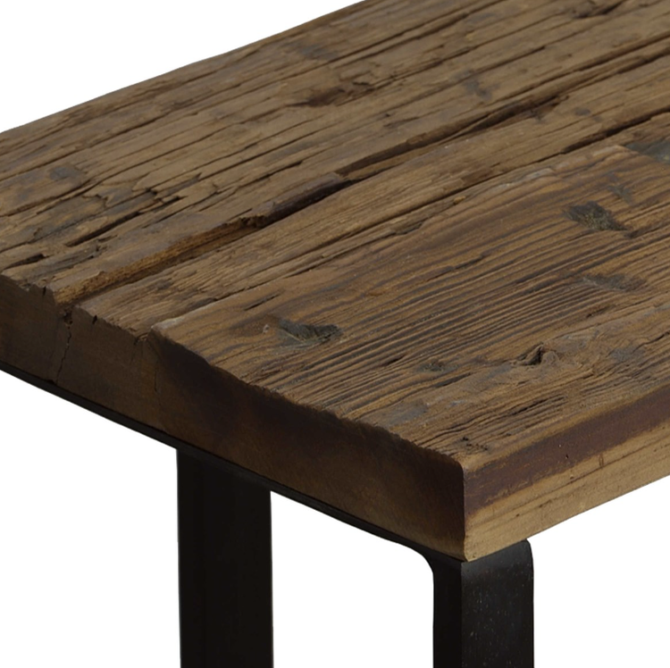 True to the nature of salvaged wood, this piece will show rustic signs of past usage. Solid wood will continue to move with temperature and humidity changes, which can result in small cracks and uneven surfaces, adding to its authenticity and character.