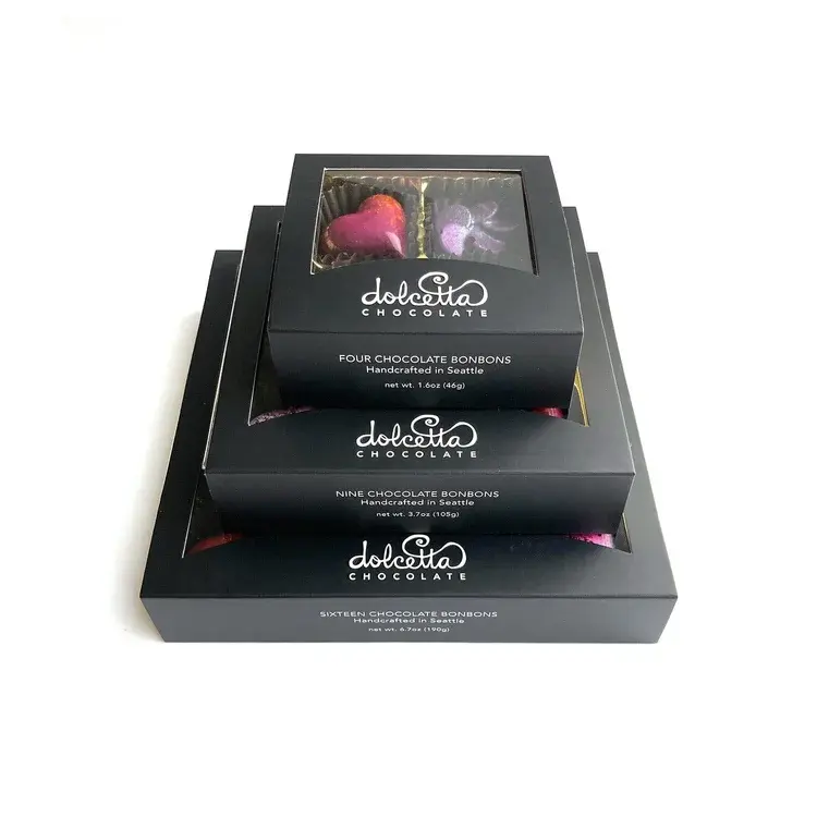 Available in sets of 4, 9, or 16, these bonbons are a delightful blend of artistry and indulgence. The set of 4 features passion fruit, earl grey, ginger, and vanilla bean flavors—each crafted to create a memorable taste experience.