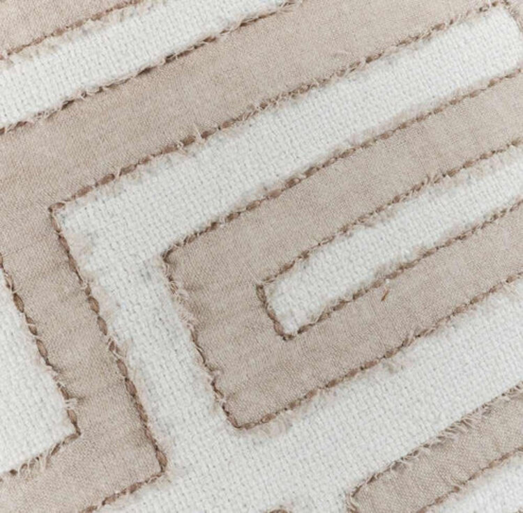 Inspired by traditional Kuba textiles, the Mateo Collection showcases craftsmanship at its finest. The pillow features a hand-applied appliqué design, intricate hand-stitched embroidery techniques, and a timeless knife-edge finish that adds clean, structured beauty.