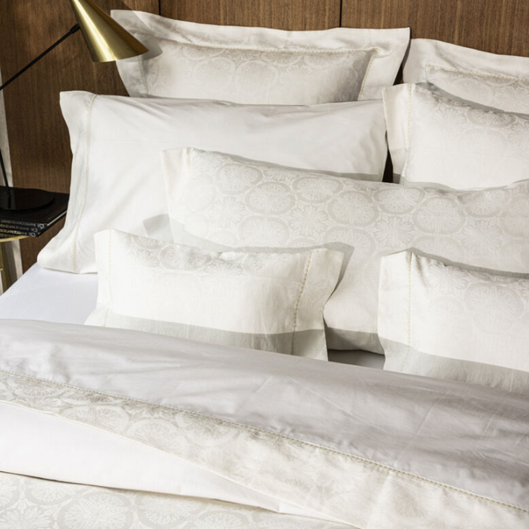 - 7 cm ruffles on 4 sides for the square shape; 7 cm ruffles on 2 sides for the rectangular shape.- Front: Jacquard métis 118 threads/cm2 ,- Back: cotton percale 80 threads/cm2