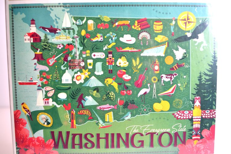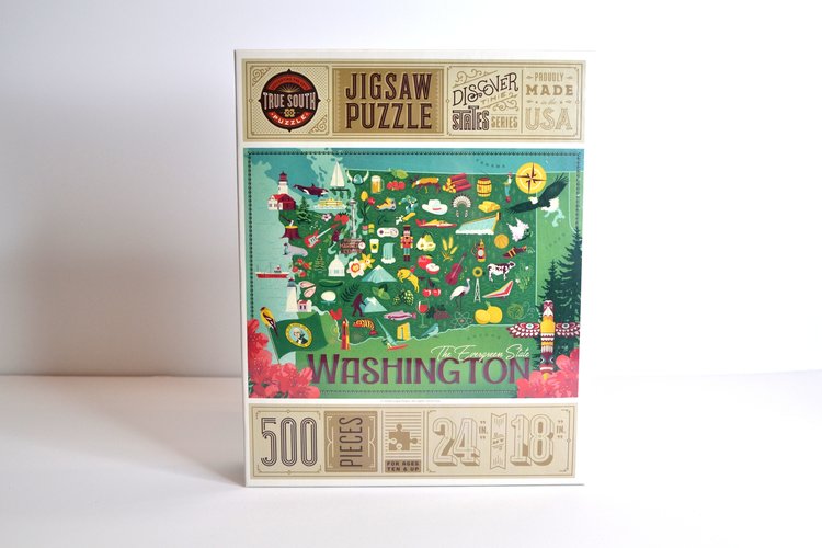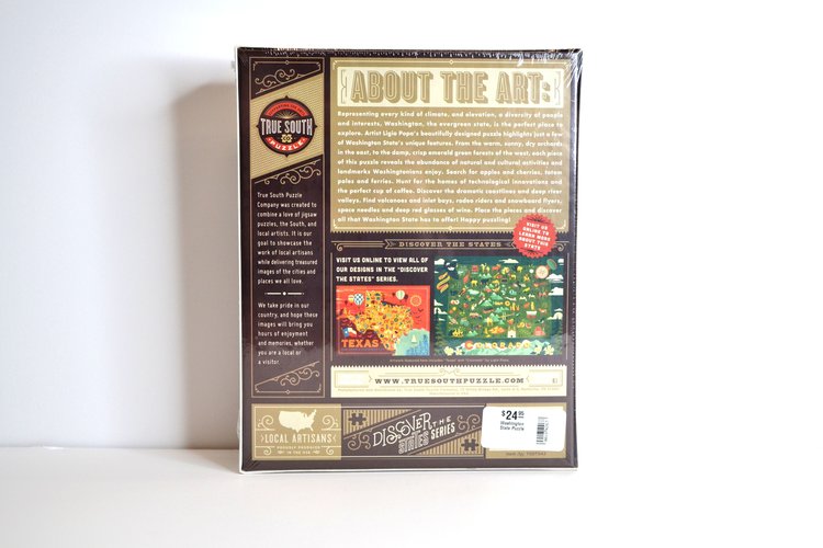 Have you ever visited the Zillah Fruit Loop Vineyards? Take the scenic route through Washington with this 500-piece puzzle. Complete the cartographic challenge, and you'll produce an illustrated map that showcases your chosen locale's climate, landmarks, and even culinary characteristics. With an included key detailing each highlight, this puzzle lets you discover new spots to explore or reminisce about your favorite parts of the country. Made in Indiana.
